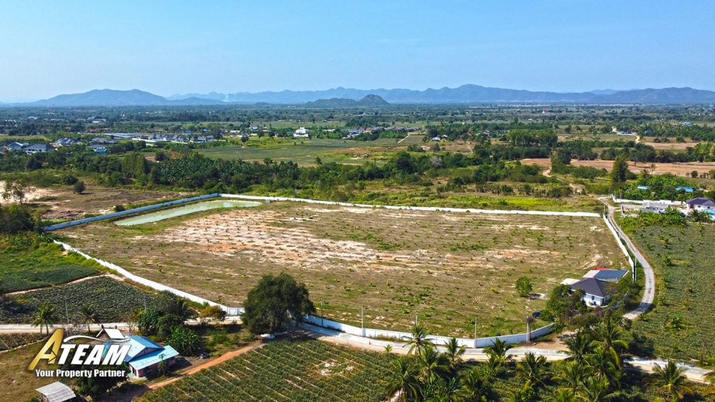This beautiful and ready-to-build land is located 15 minutes from Hua Hin in Wang Pong. It has a very large area of 26 rai (41,600 sq.m.).